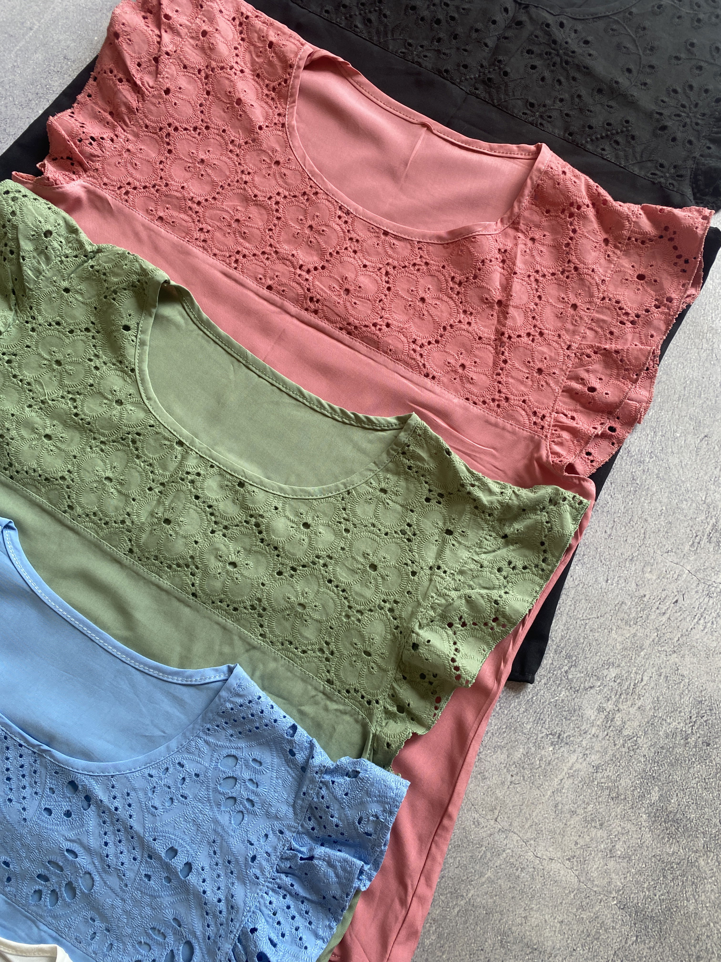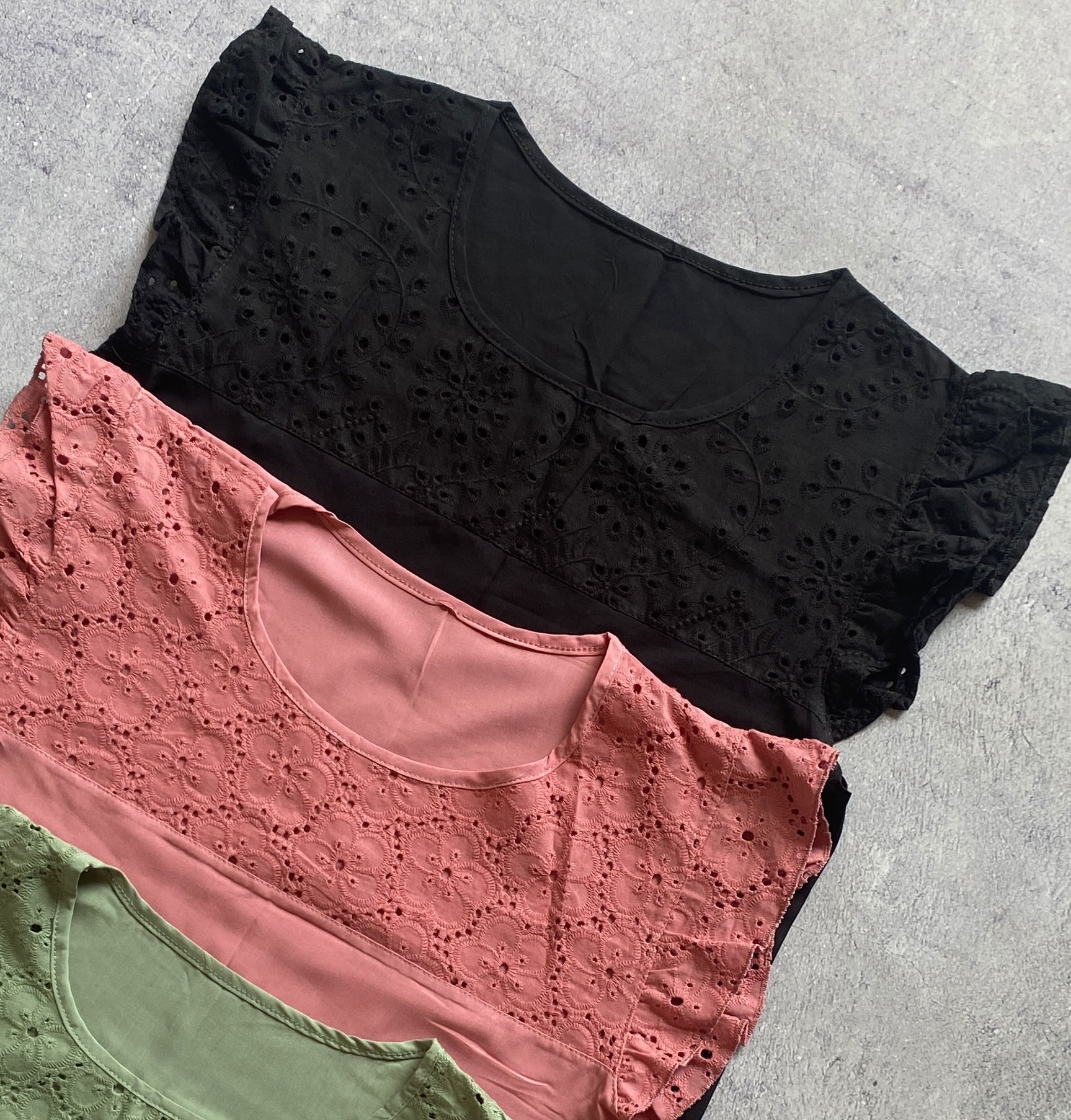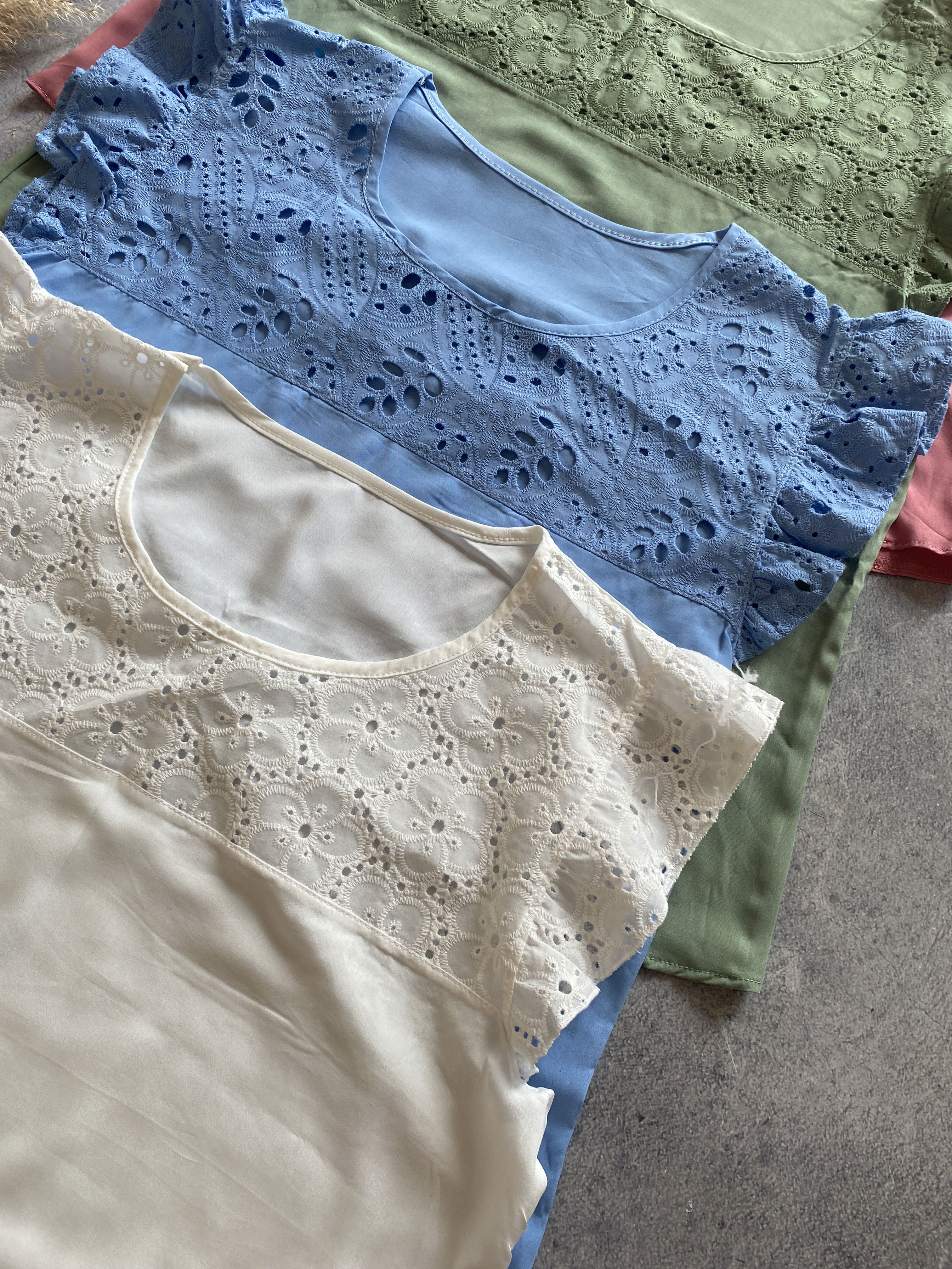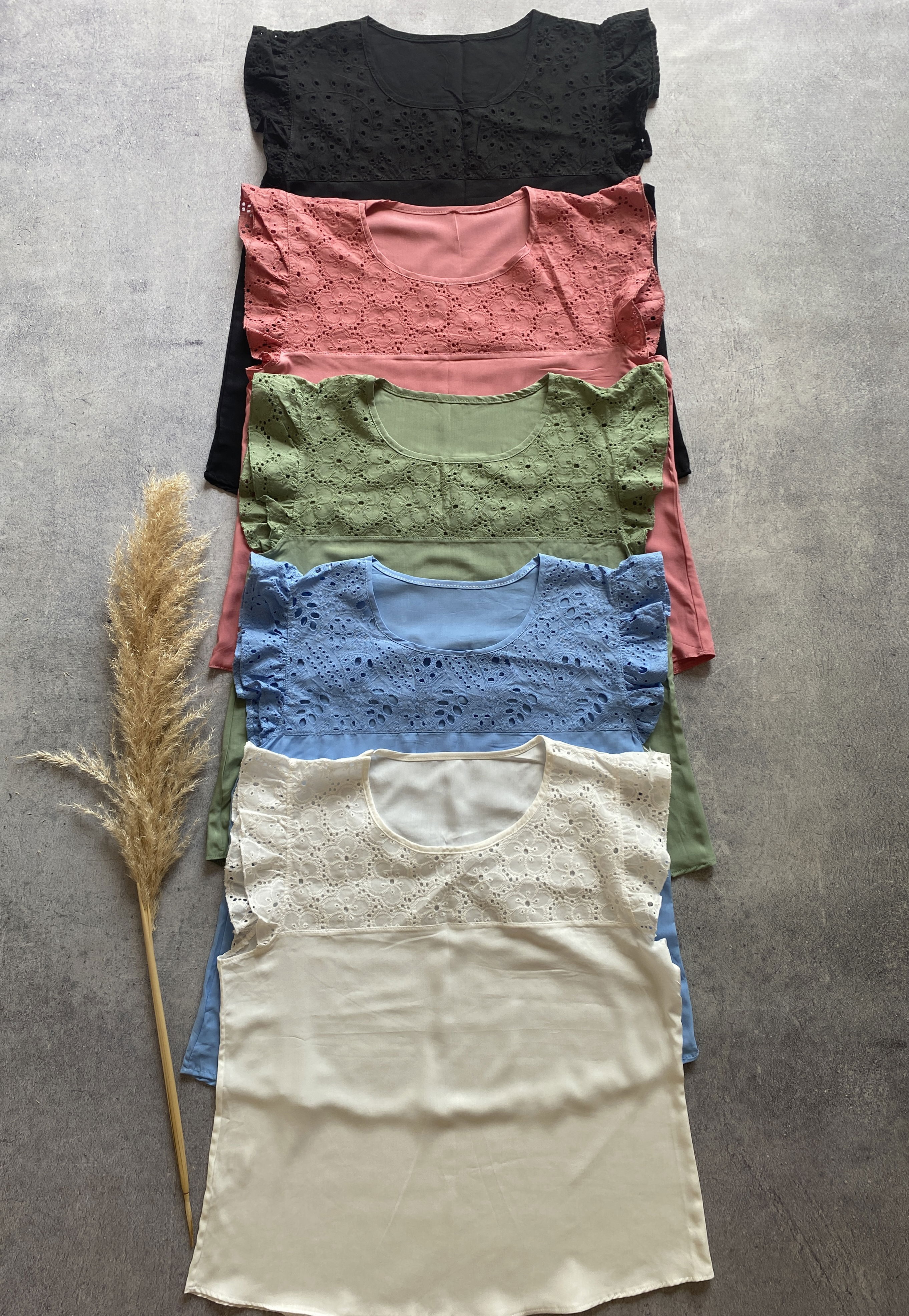 Blusa de Fibrana con brodery, volados en manga, súper fresca, cómodo y hermosa. Talle único Abarca bastante.