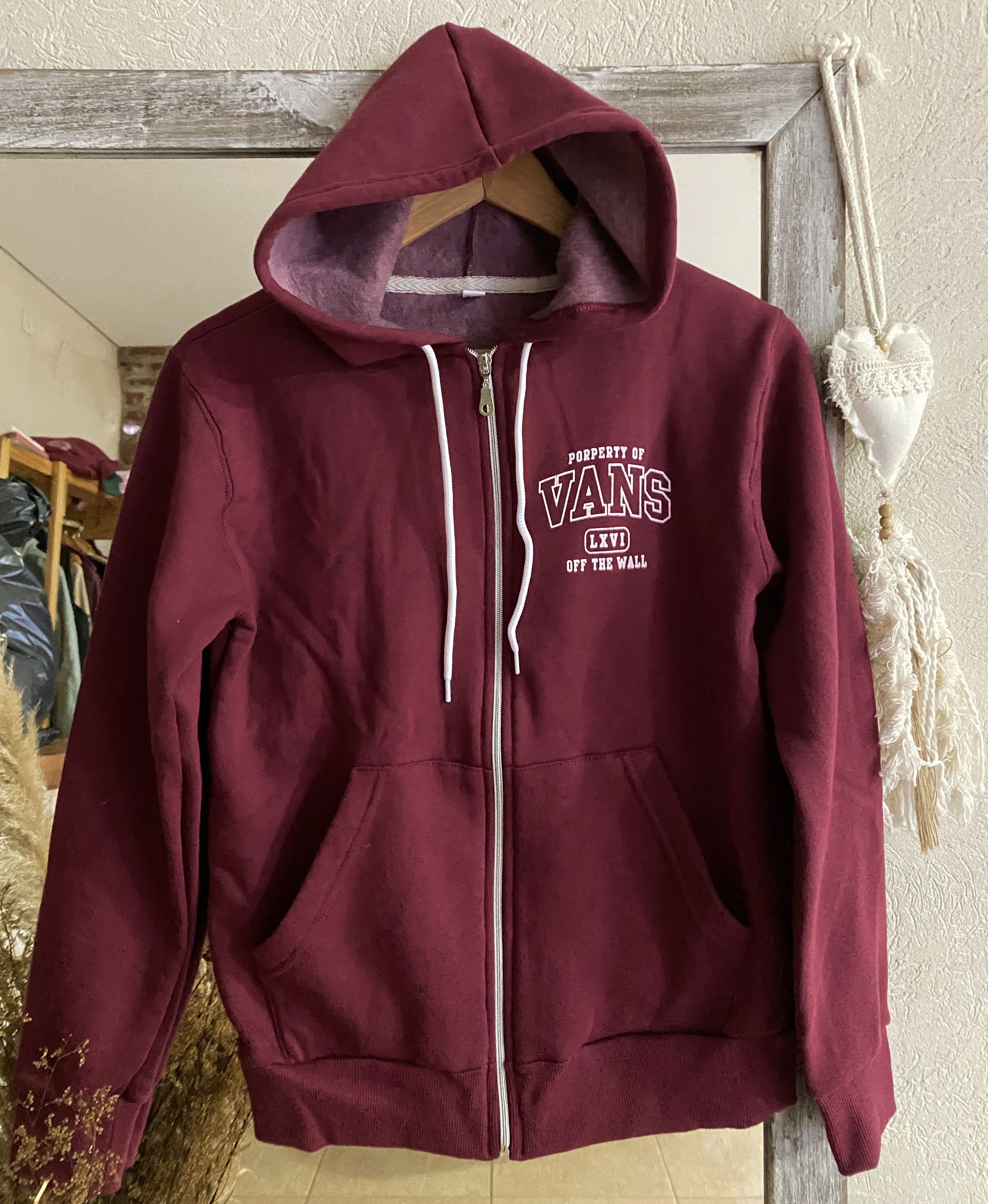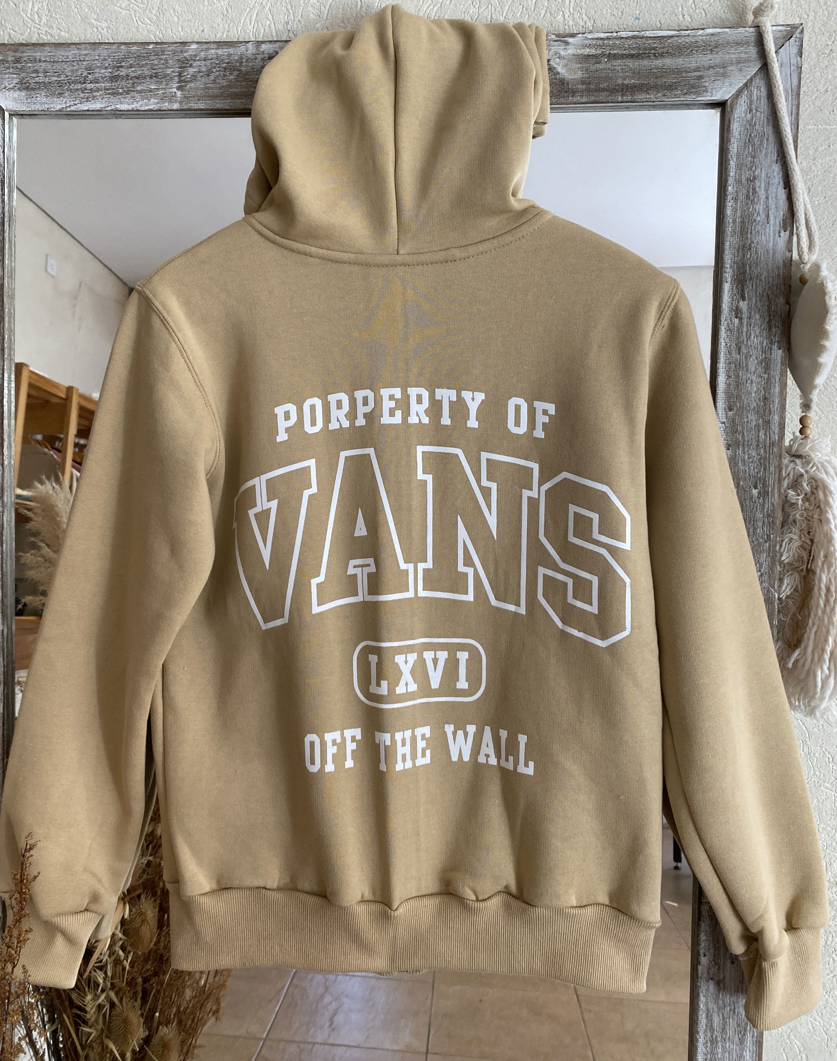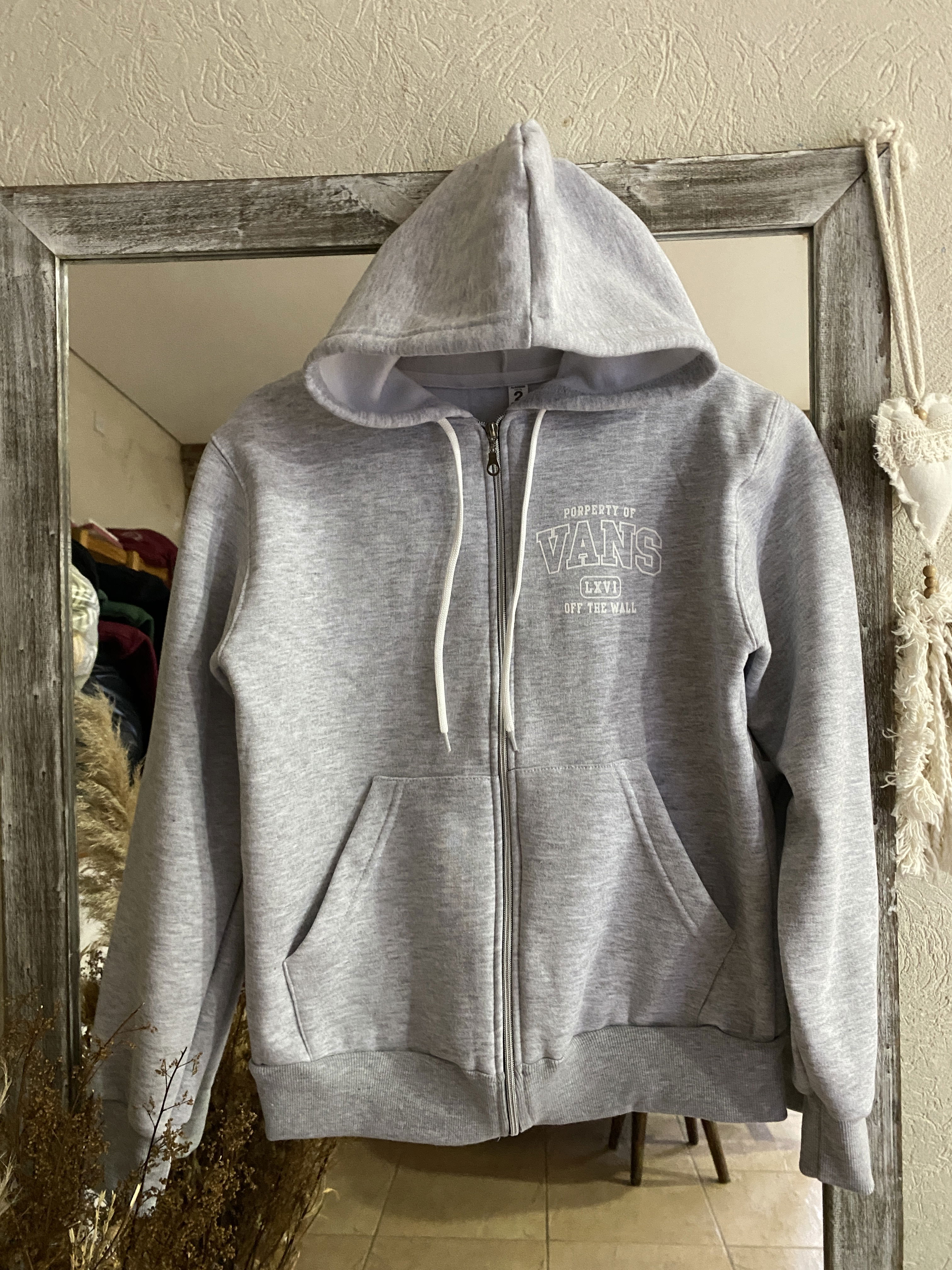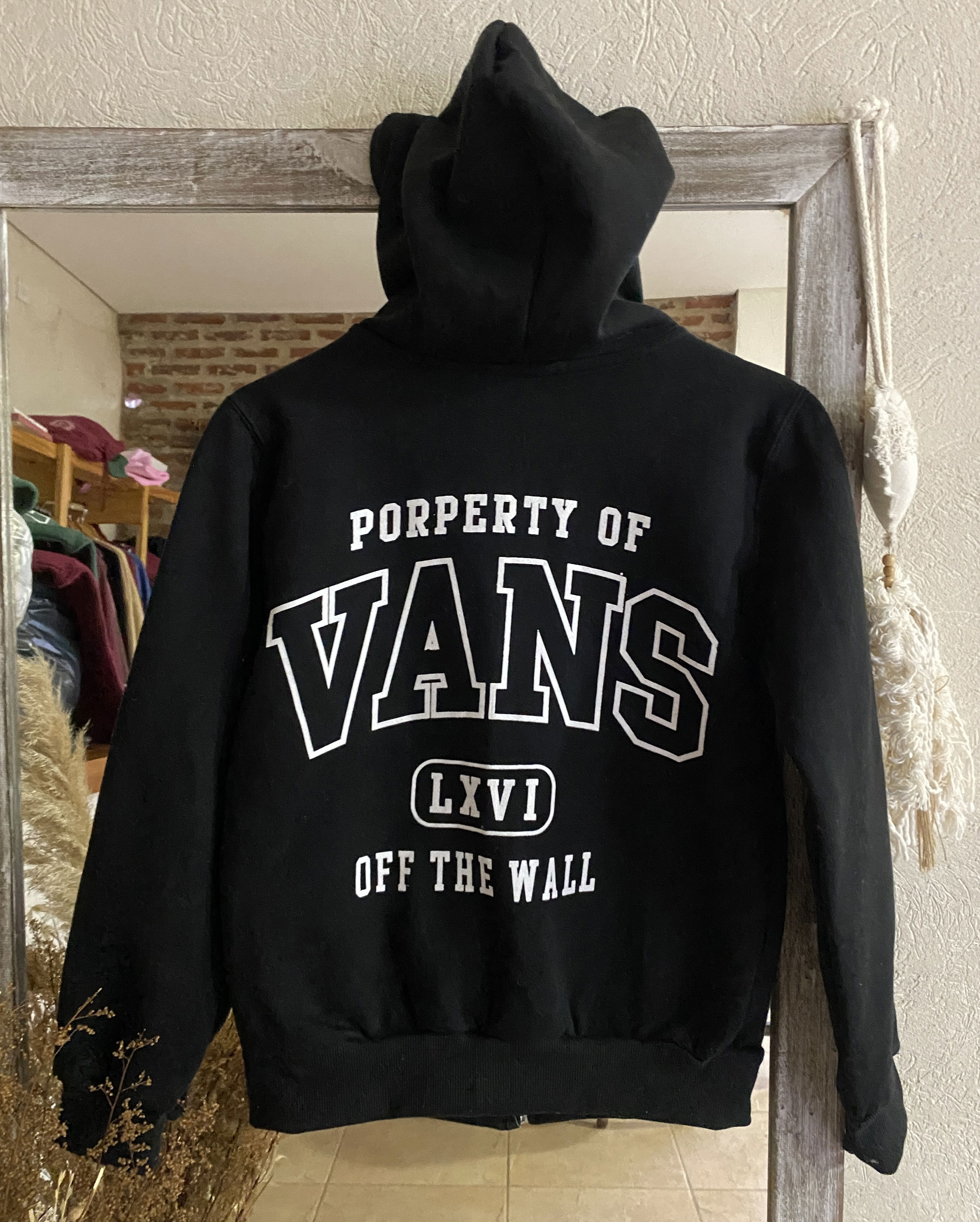 Campera de algod贸n peinado friza premium doble estampa vans, bolsillos canguro, capucha, terminaciones perfectas, pu帽o y cintura el谩stica, cierre met谩lico, cuello reforzado.