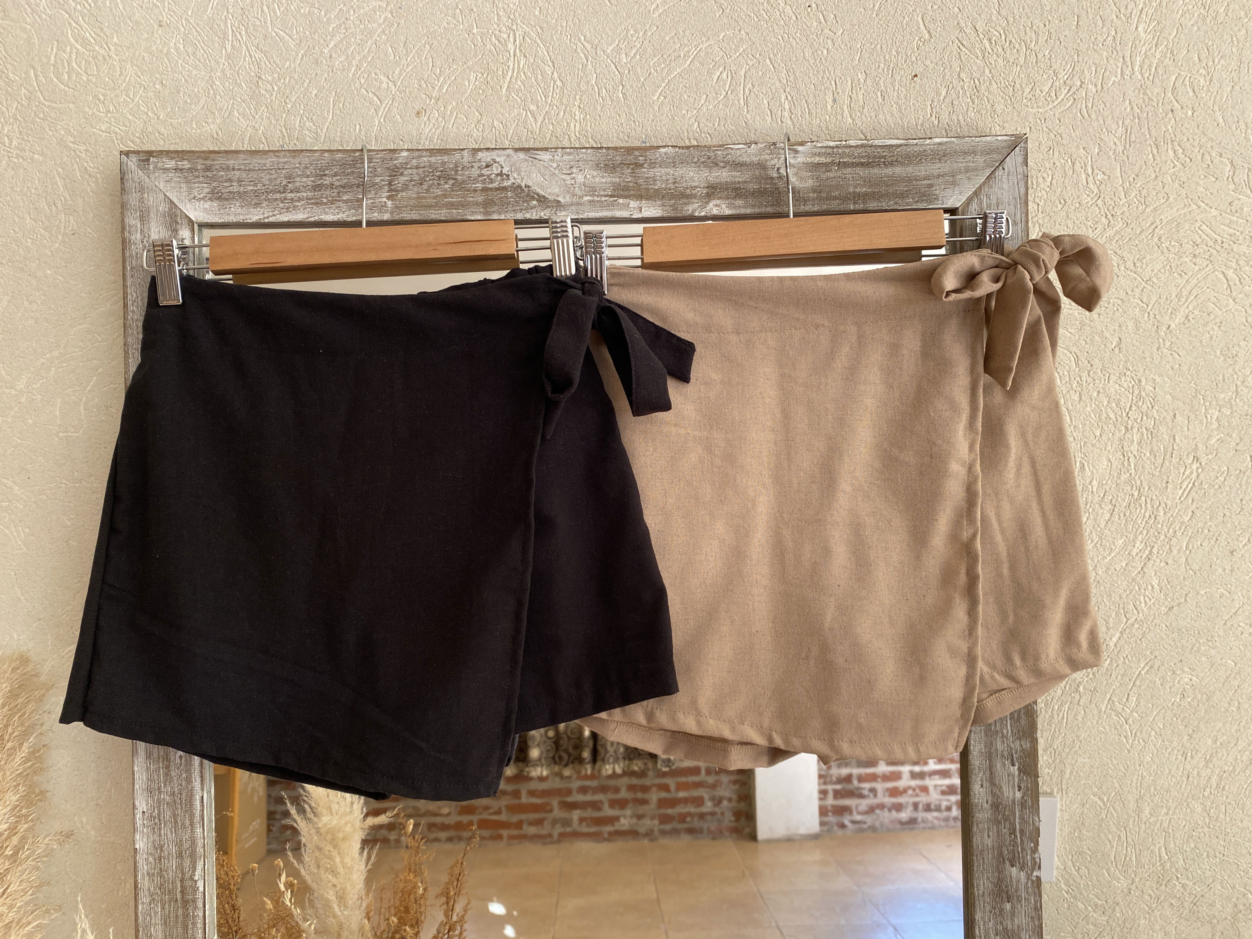 Short pollera de Lino sastrero, súper bellas, con elastico en la cintura.