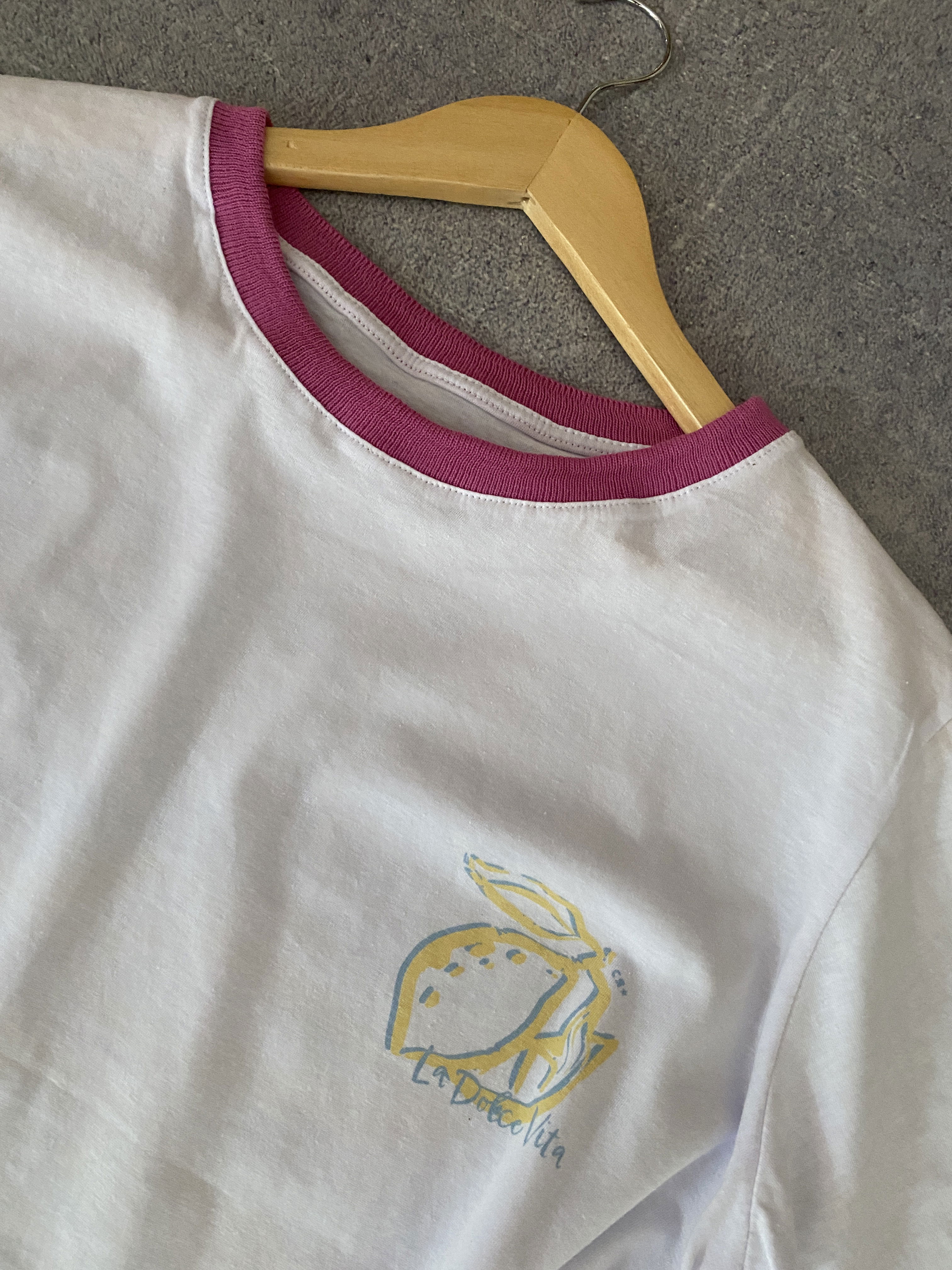 Remera de algodón premium estampada, con cuello rib de excelente calidad. Una prenda súper cómoda, combinable con todo, y que dura años.
