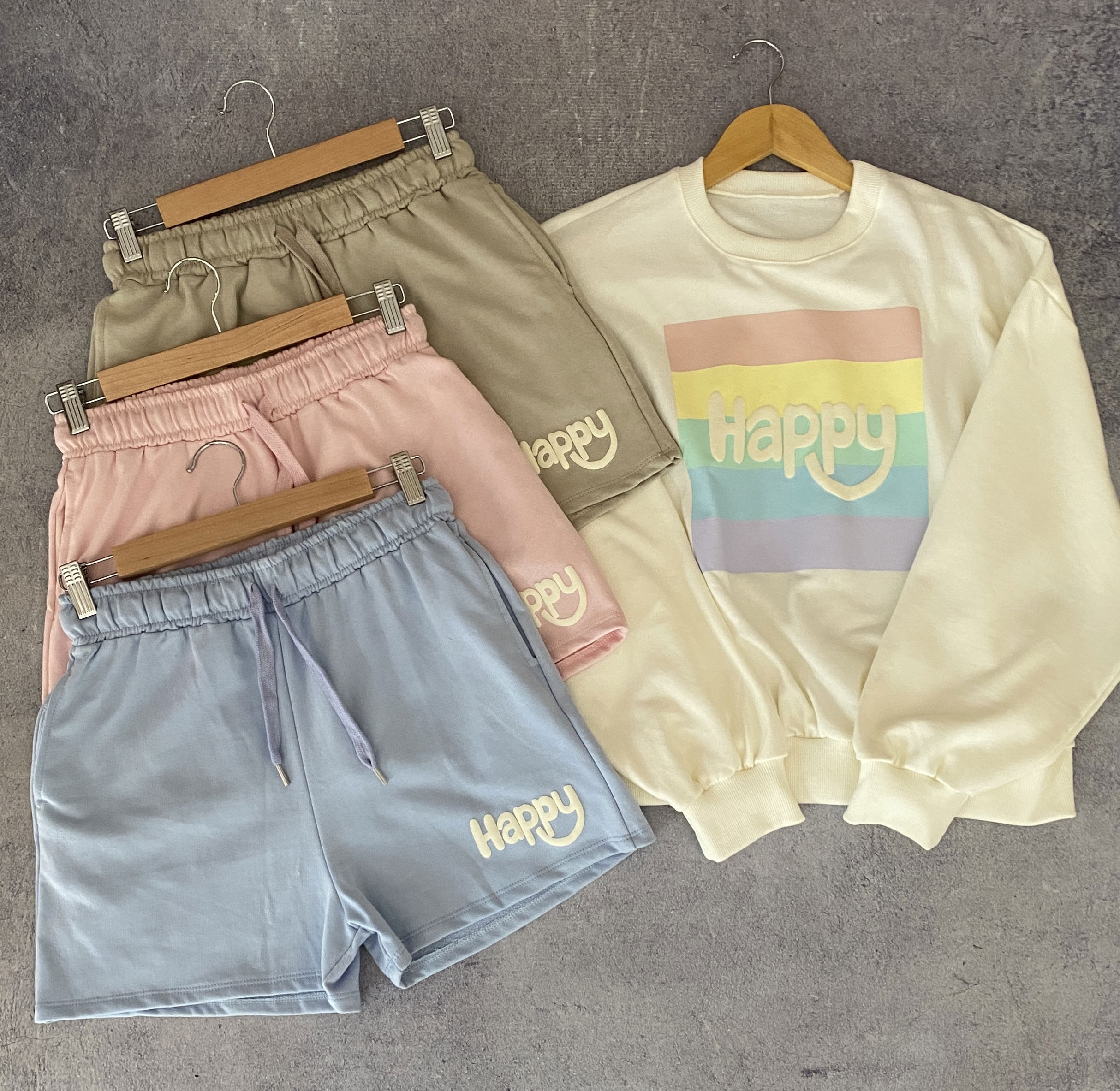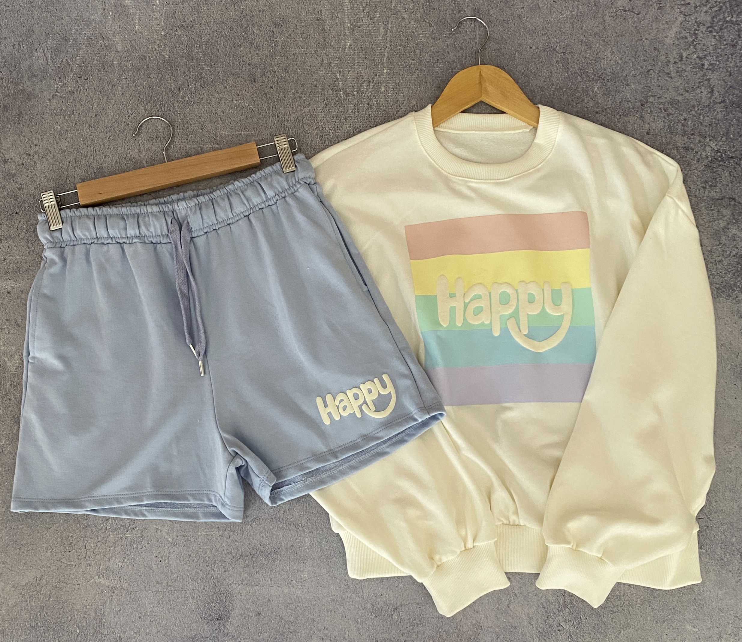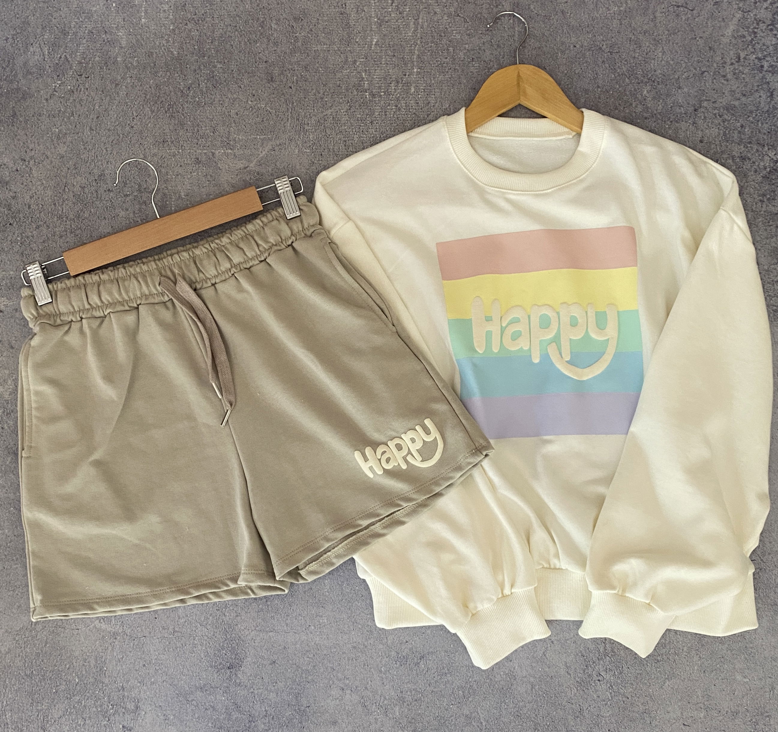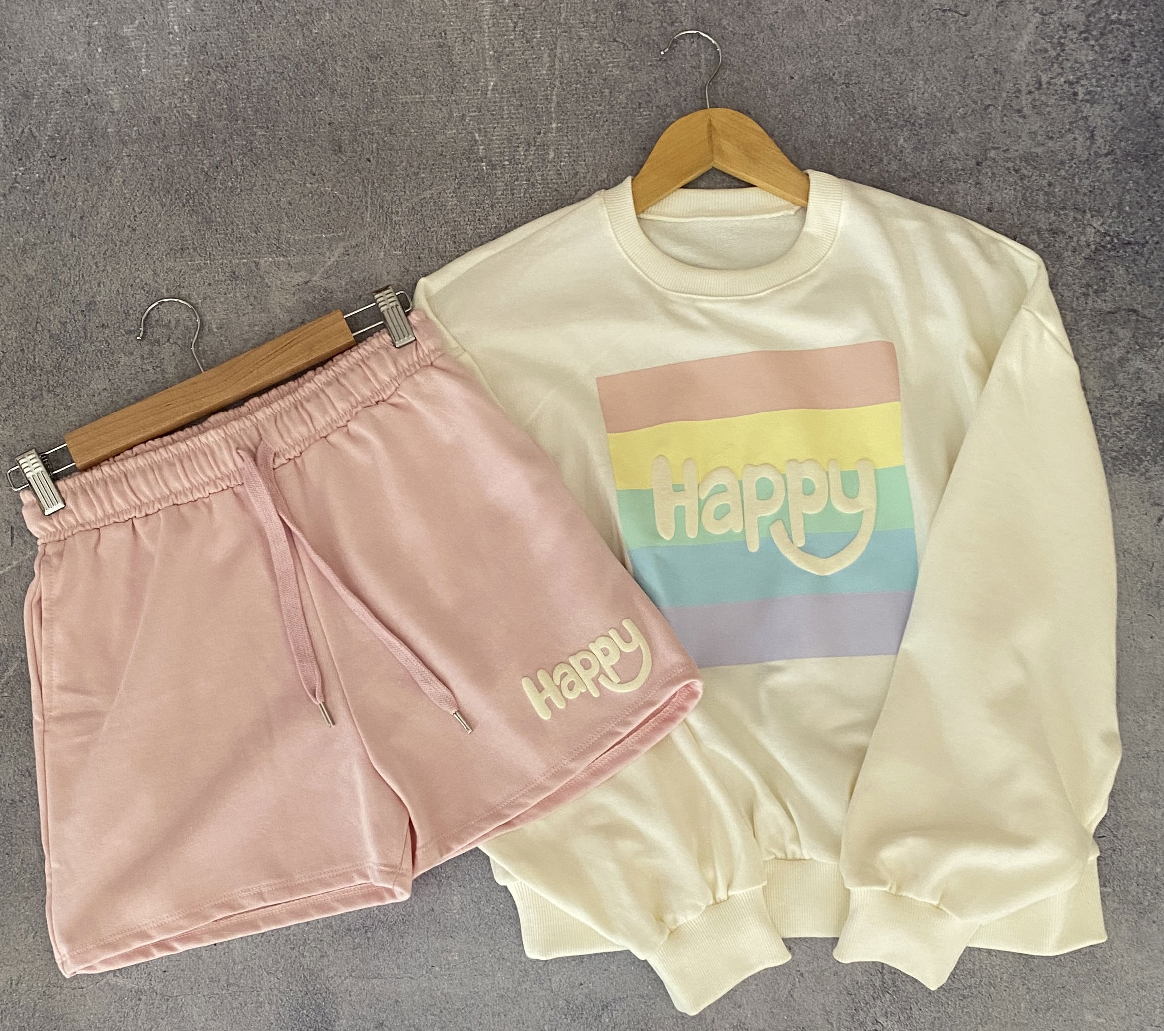 Conjunto de calidad súper premium. Está confeccionado en algodón rústico, su estampado es en relieve. El short cuenta con bolsillos y el buzo con puños de rib. Es talle único Abarca de 38 a 42 Perfecto. Ya que lo podes regular con el elastico y cordón.