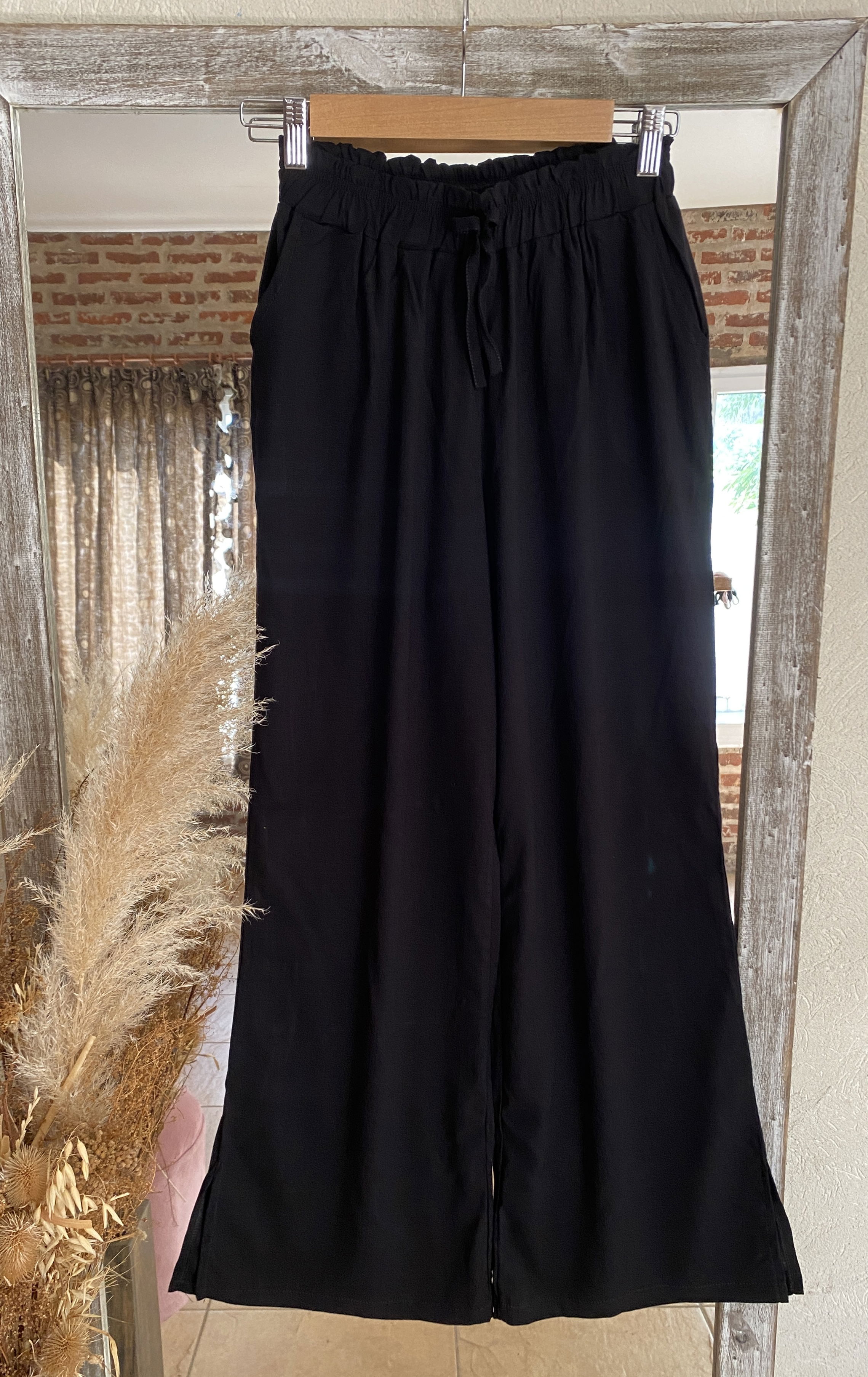 Palazo de Lino de Lino con tajo, super fresco cómodo y con elastico en la cintura. Bolsillos.