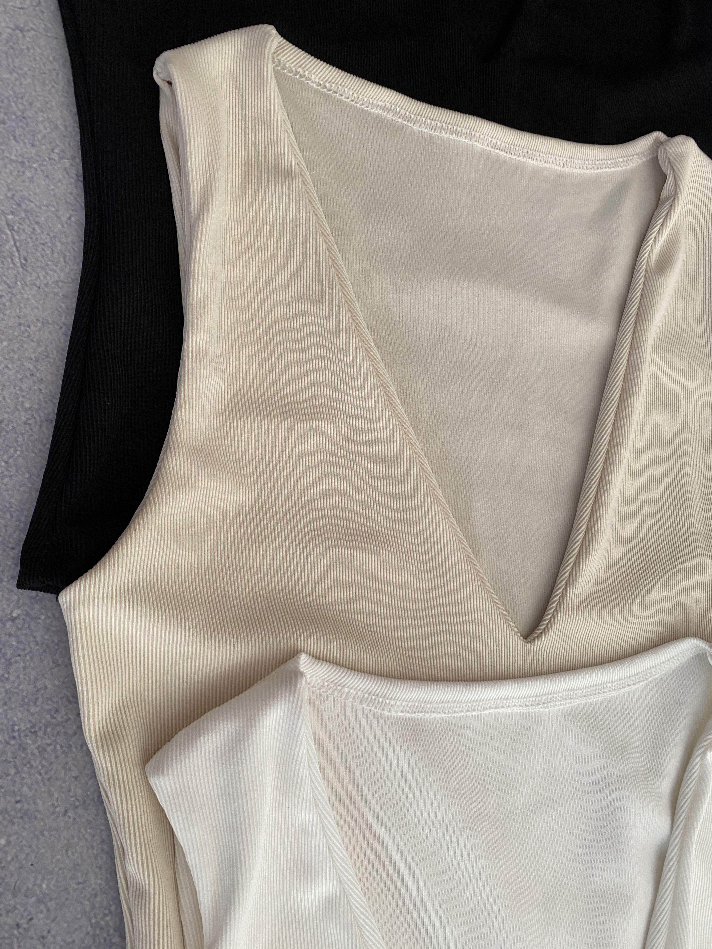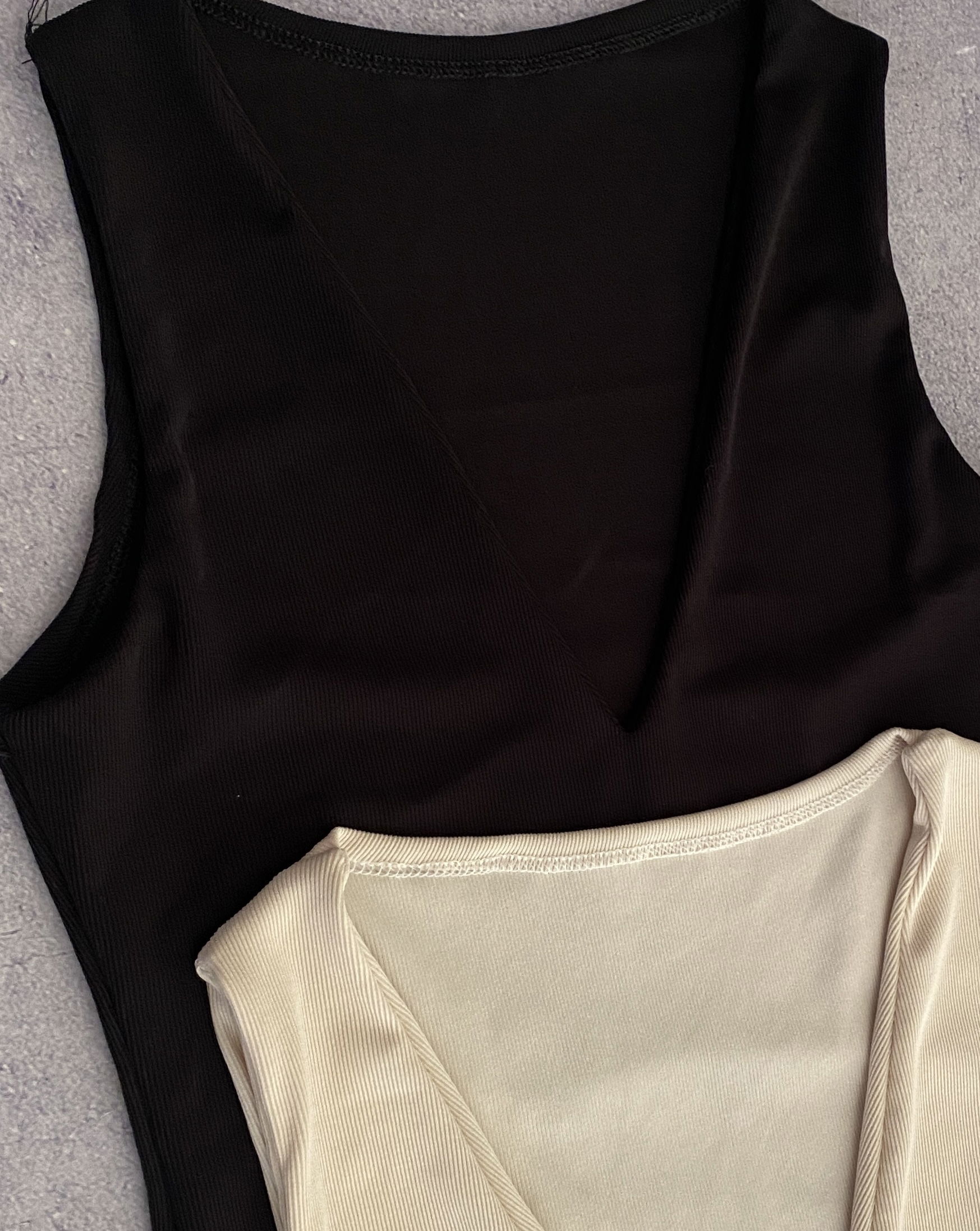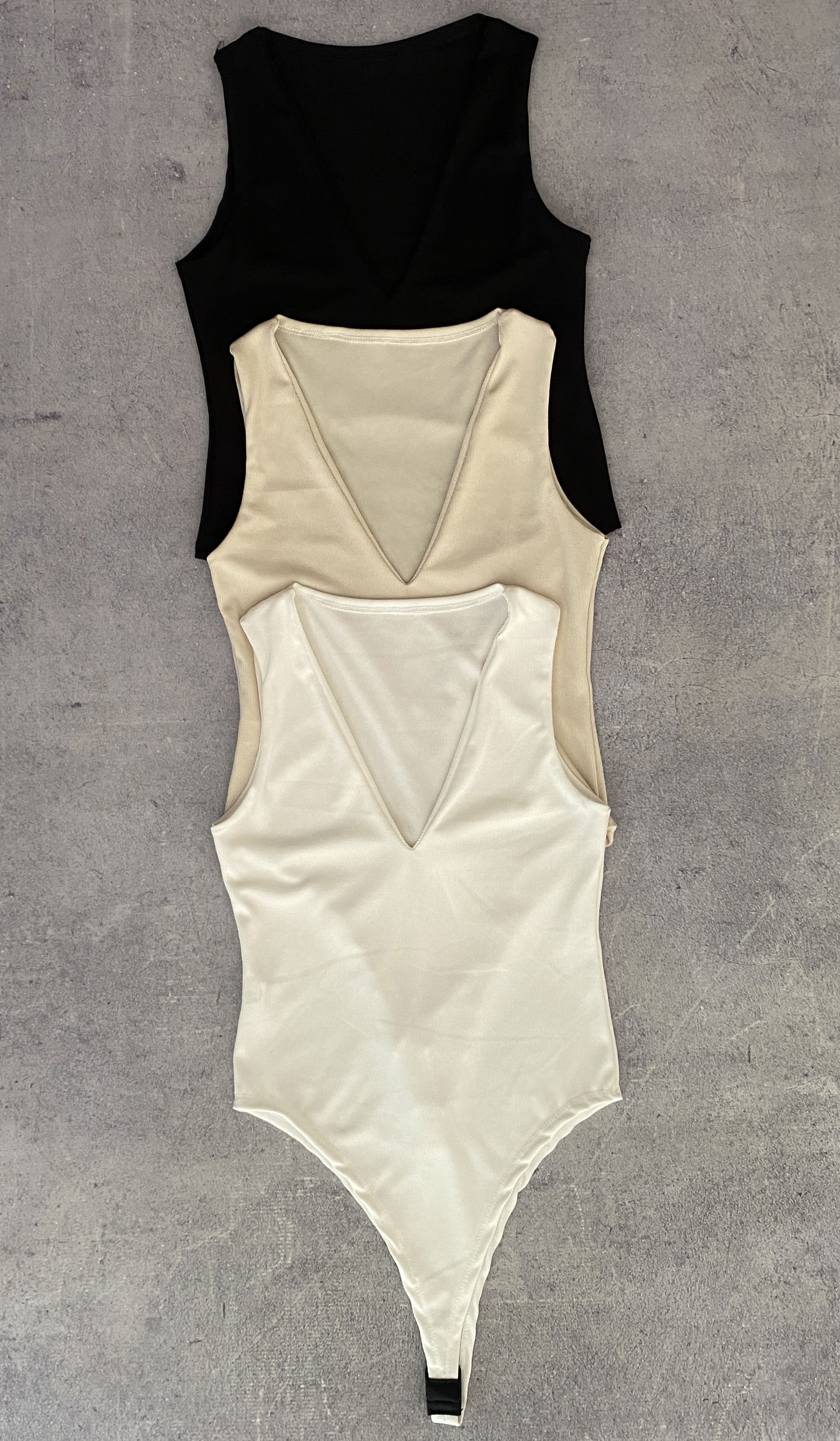 Body escote en V doble tela en pecho, broche en la parte de abajo.