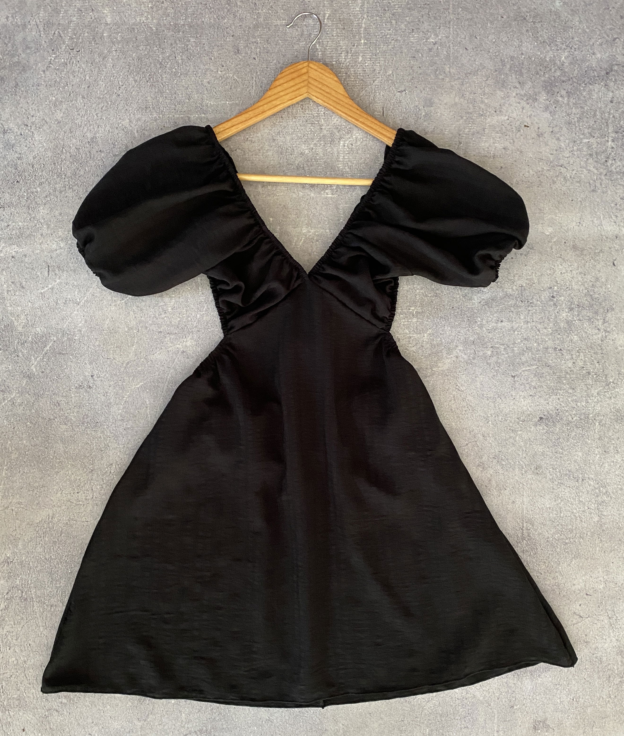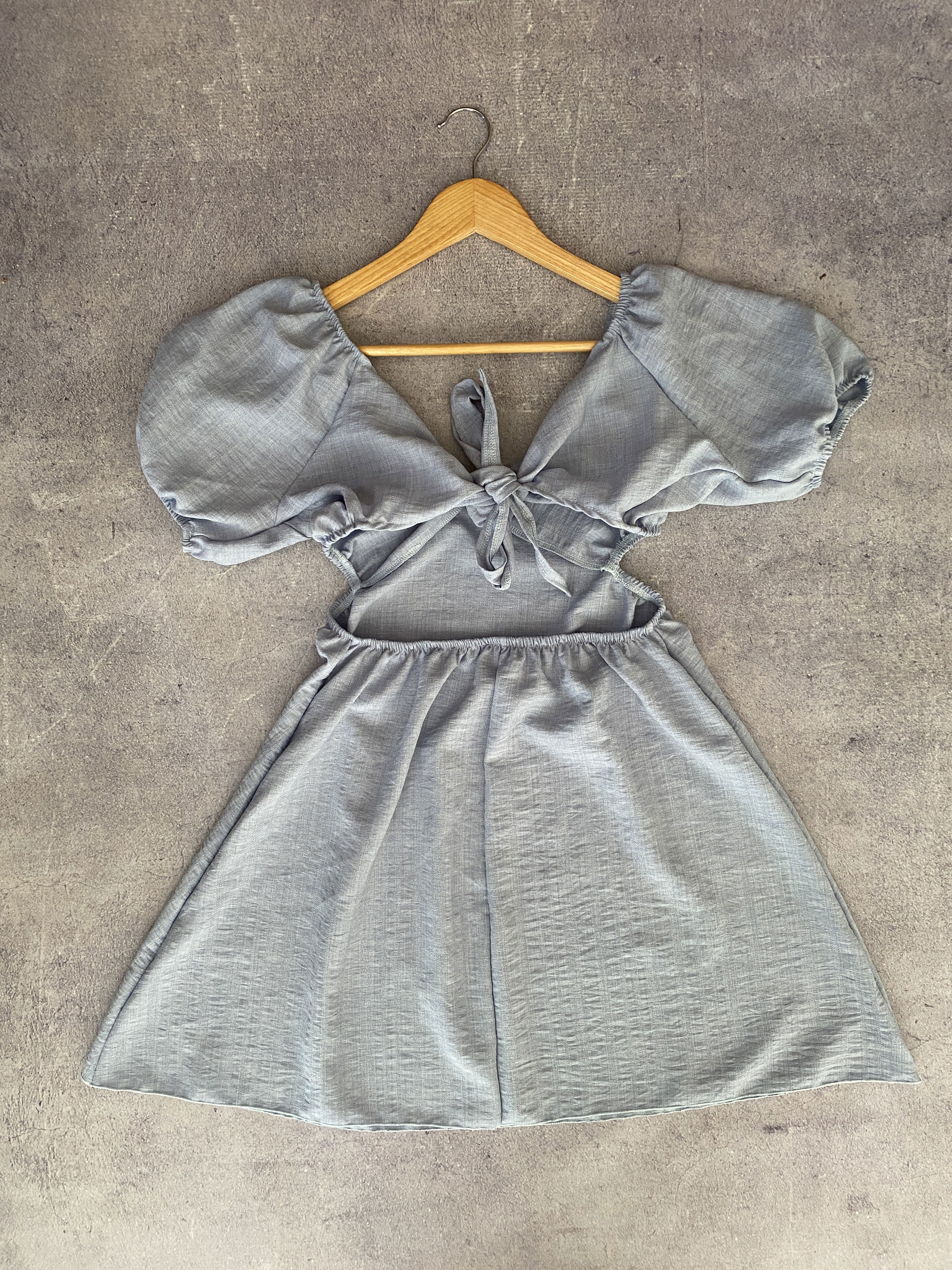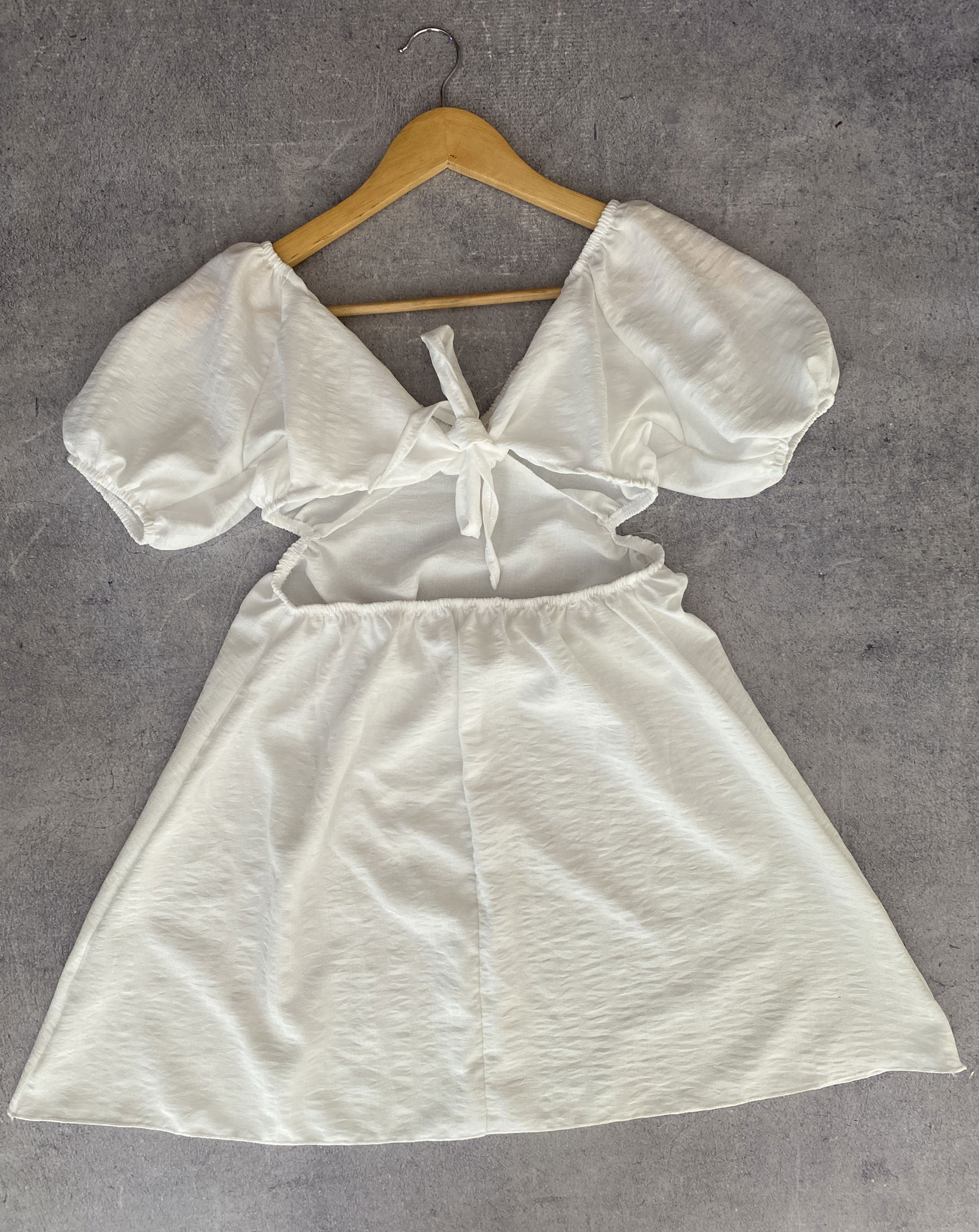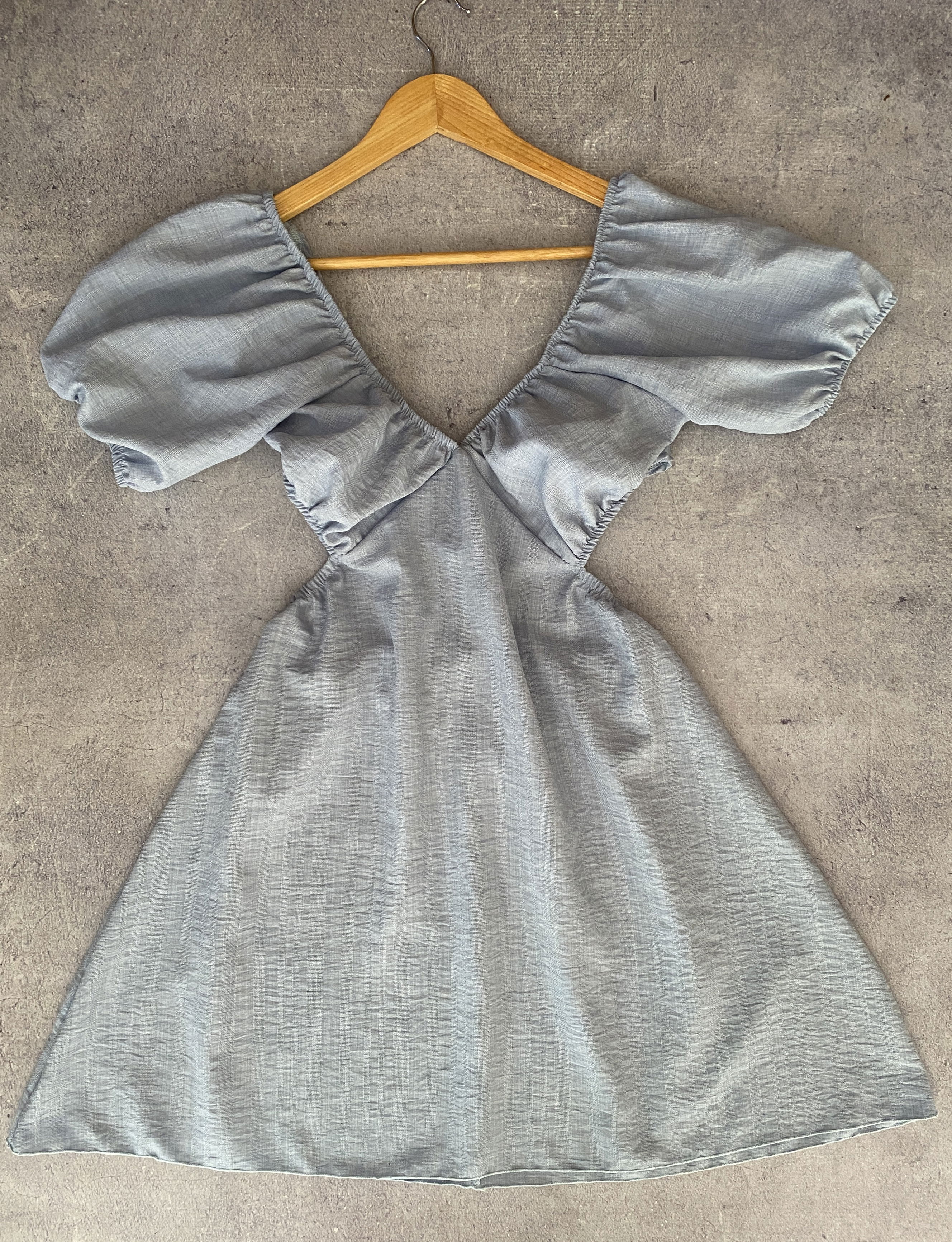 Vestido de Lino con diferenciado hermosa tela. Escote, mangas y espalda con elastico lo cual hace que se adapte súper bien al cuerpo. Queda bellísimo y súper fresco. También se ata en la espalda lo cual lo regulas vos a tu medida.