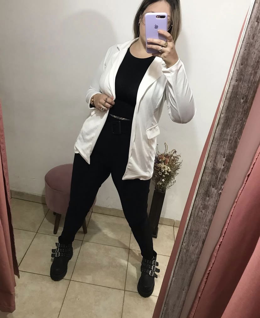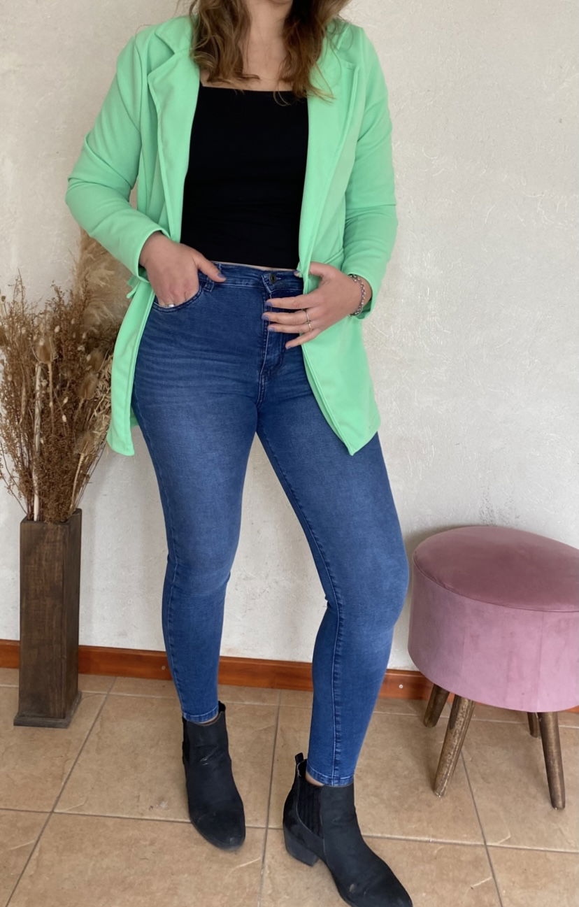Blazer con boton (simil bolsillo), tela crep scuba.