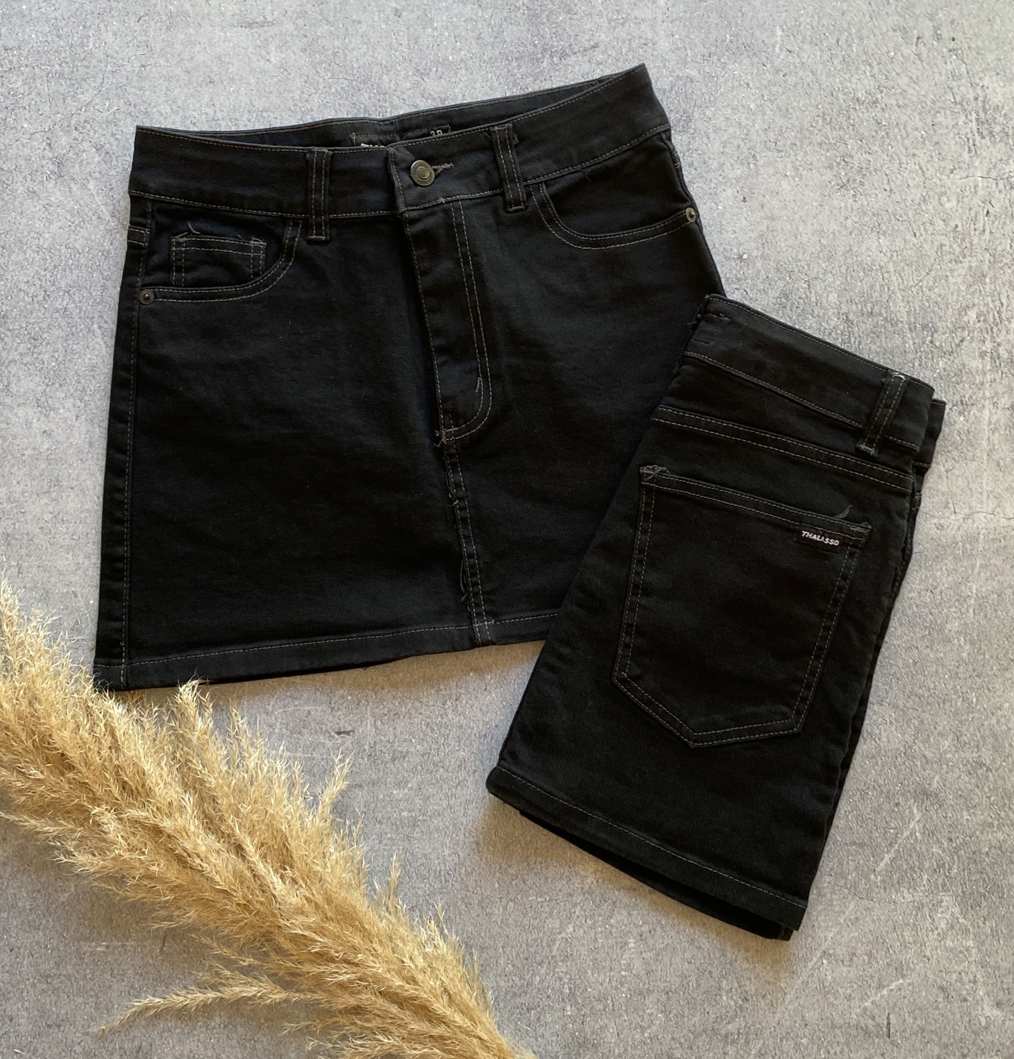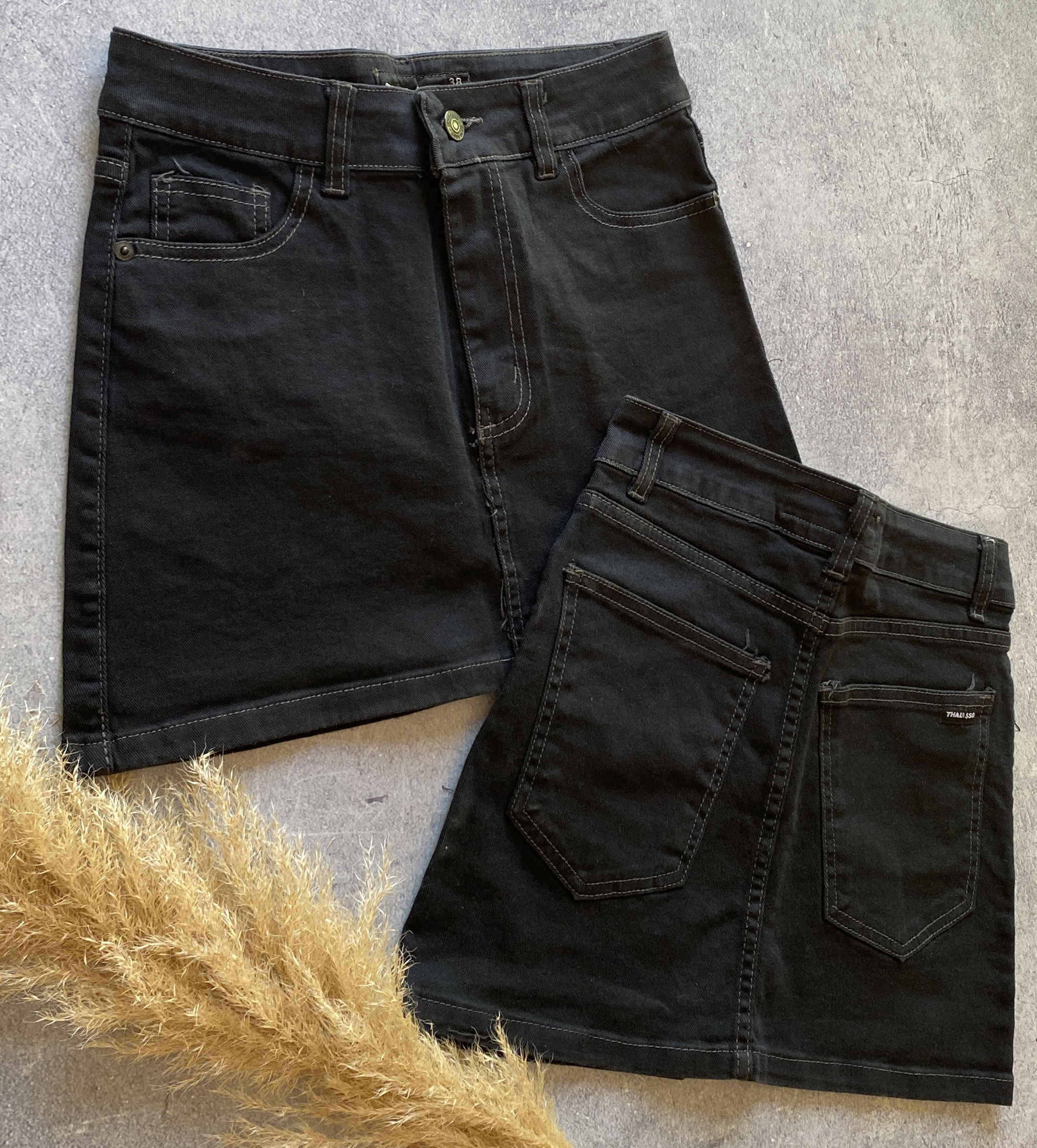 Pollera negra thalasso semi elastizado, hilo camel. Calce Perfecto.